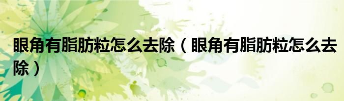 大家好,知識(shí)小編來為大家解答以上的問題。眼角有脂肪粒怎么去除,眼角有脂肪粒怎么去除很多人還不知道,現(xiàn)在讓我們一起來看看吧!