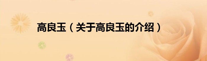 大家好,小新來為大家解答以上的問題。高良玉,關(guān)于高良玉的介紹很多人還不知道,現(xiàn)在讓我們一起來看看吧!