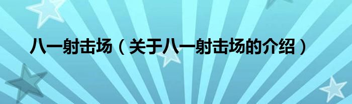 大家好,小新來(lái)為大家解答以上的問(wèn)題。八一射擊場(chǎng),關(guān)于八一射擊場(chǎng)的介紹很多人還不知道,現(xiàn)在讓我們一起來(lái)看看吧!