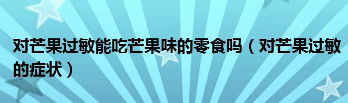 大家好,知識小編來為大家解答以上的問題。對芒果過敏能吃芒果味的零食嗎,對芒果過敏的癥狀很多人還不知道,現(xiàn)在讓我們一起來看看吧!