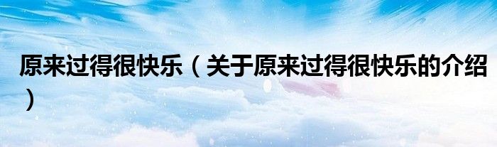 大家好,小新來為大家解答以上的問題。原來過得很快樂,關(guān)于原來過得很快樂的介紹很多人還不知道,現(xiàn)在讓我們一起來看看吧!