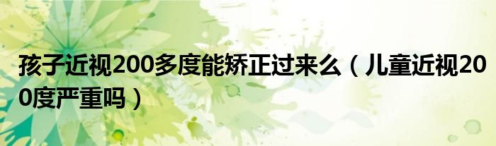 摘要大家好,知識(shí)小編來為大家解答以上的問題。孩子近視200多度能矯正過來么,兒童近視200度嚴(yán)重嗎很多人還不知道,現(xiàn)在讓我們一起來看看吧!如