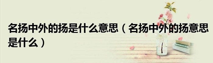 大家好,伊人來為大家解答以上問題。名揚中外的揚是什么意思,名揚中外的揚意思是什么很多人還不知道,現(xiàn)在讓我們一起來看看吧!