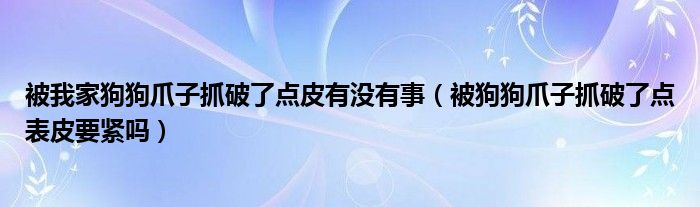 大家好,知識小編來為大家解答以上的問題。被我家狗狗爪子抓破了點皮有沒有事,被狗狗爪子抓破了點表皮要緊嗎很多人還不知道,現在讓我們一起來看看吧!