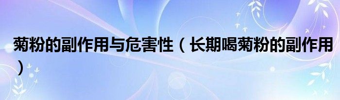 大家好,知識小編來為大家解答以上的問題。菊粉的副作用與危害性,長期喝菊粉的副作用很多人還不知道,現(xiàn)在讓我們一起來看看吧!