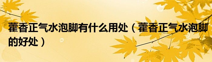 摘要大家好,知識(shí)小編來為大家解答以上的問題。藿香正氣水泡腳有什么用處,藿香正氣水泡腳的好處很多人還不知道,現(xiàn)在讓我們一起來看看吧!藿香