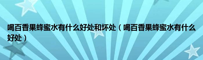 摘要大家好,知識小編來為大家解答以上的問題。喝百香果蜂蜜水有什么好處和壞處,喝百香果蜂蜜水有什么好處很多人還不知道,現(xiàn)在讓我們一起來看