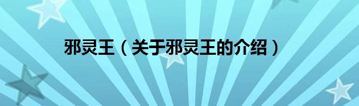 大家好,小新來為大家解答以上的問題。邪靈王,關(guān)于邪靈王的介紹很多人還不知道,現(xiàn)在讓我們一起來看看吧!