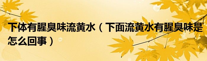 大家好,知識小編來為大家解答以上的問題。下體有腥臭味流黃水,下面流黃水有腥臭味是怎么回事很多人還不知道,現(xiàn)在讓我們一起來看看吧!