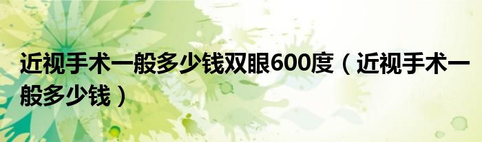 摘要大家好,知識小編來為大家解答以上的問題。近視手術(shù)一般多少錢雙眼600度,近視手術(shù)一般多少錢很多人還不知道,現(xiàn)在讓我們一起來看看吧!對