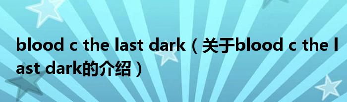 摘要 大家好,小新來為大家解答以上的問題。blood c the last dark,關于blood c the last dark的介紹很多人還不知道,現(xiàn)在讓我們一起來
