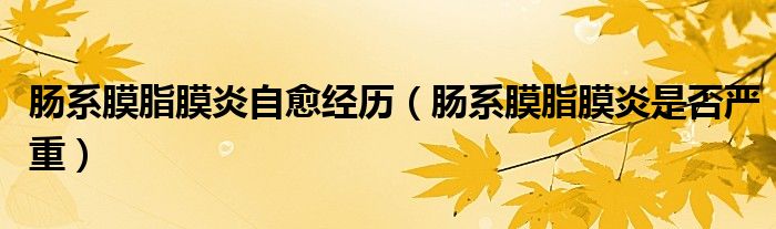 大家好,知識小編來為大家解答以上的問題。腸系膜脂膜炎自愈經(jīng)歷,腸系膜脂膜炎是否嚴(yán)重很多人還不知道,現(xiàn)在讓我們一起來看看吧!