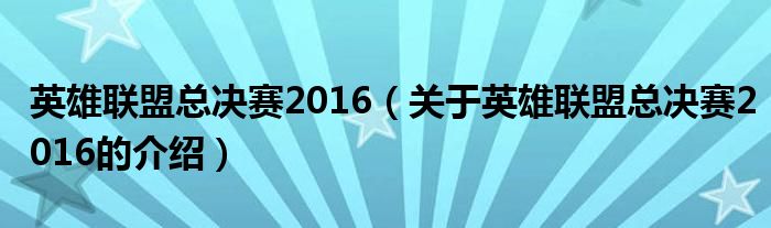 大家好,小新來為大家解答以上的問題。英雄聯(lián)盟總決賽2016,關(guān)于英雄聯(lián)盟總決賽2016的介紹很多人還不知道,現(xiàn)在讓我們一起來看看吧!