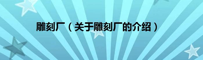 大家好,小新來為大家解答以上的問題。雕刻廠,關(guān)于雕刻廠的介紹很多人還不知道,現(xiàn)在讓我們一起來看看吧!