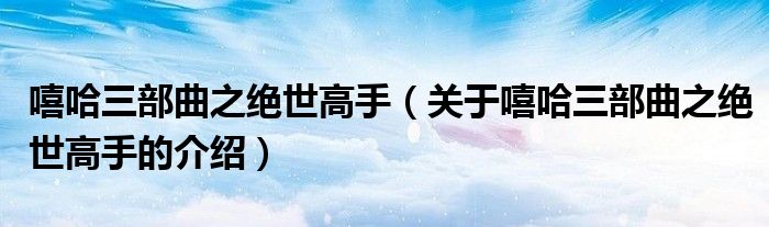 1、《嘻哈三部曲之絕世高手》是2013年3月28日由北京保利博納電影發(fā)行有限公司發(fā)行的網(wǎng)絡喜劇短片,由盧正雨執(zhí)導,盧正雨、果曉丹編劇,盧正雨、曹仁偉等人主演。