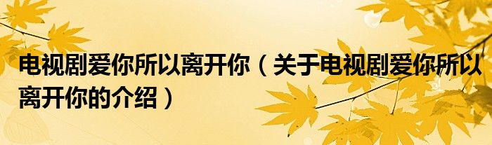 大家好,小新來為大家解答以上的問題。電視劇愛你所以離開你,關于電視劇愛你所以離開你的介紹很多人還不知道,現(xiàn)在讓我們一起來看看吧!