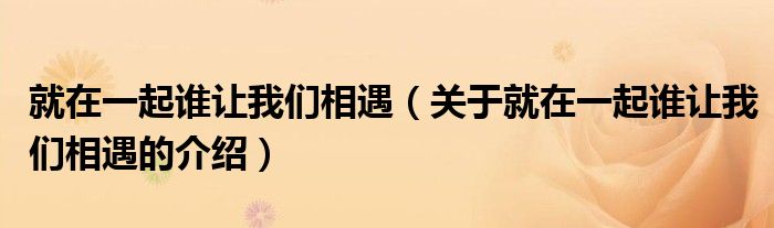 大家好,小新來為大家解答以上的問題。就在一起誰讓我們相遇,關(guān)于就在一起誰讓我們相遇的介紹很多人還不知道,現(xiàn)在讓我們一起來看看吧!