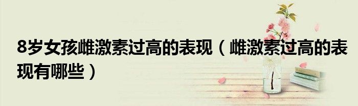 大家好,知識小編來為大家解答以上的問題。8歲女孩雌激素過高的表現(xiàn),雌激素過高的表現(xiàn)有哪些很多人還不知道,現(xiàn)在讓我們一起來看看吧!