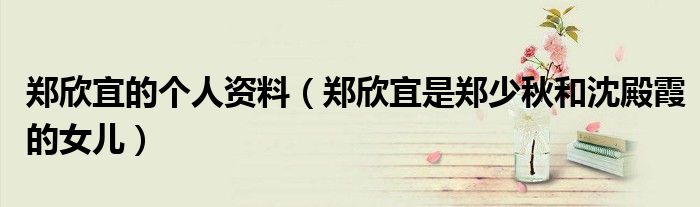 大家好,伊人來為大家解答以上問題。鄭欣宜的個人資料,鄭欣宜是鄭少秋和沈殿霞的女兒很多人還不知道,現(xiàn)在讓我們一起來看看吧!