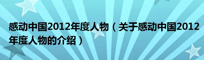 大家好,小新來為大家解答以上的問題。感動中國2012年度人物,關(guān)于感動中國2012年度人物的介紹很多人還不知道,現(xiàn)在讓我們一起來看看吧!