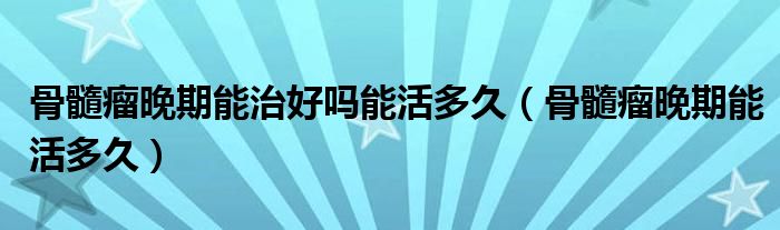 摘要大家好,知識(shí)小編來為大家解答以上的問題。骨髓瘤晚期能治好嗎能活多久,骨髓瘤晚期能活多久很多人還不知道,現(xiàn)在讓我們一起來看看吧!多發(fā)