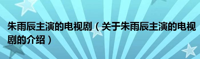 大家好,小新來(lái)為大家解答以上的問(wèn)題。朱雨辰主演的電視劇,關(guān)于朱雨辰主演的電視劇的介紹很多人還不知道,現(xiàn)在讓我們一起來(lái)看看吧!