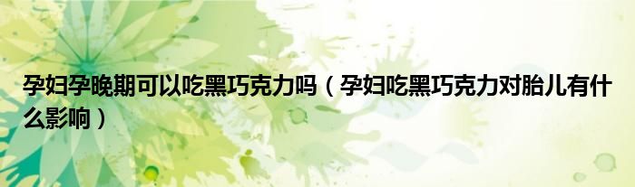 摘要大家好,知識(shí)小編來為大家解答以上的問題。孕婦孕晚期可以吃黑巧克力嗎,孕婦吃黑巧克力對(duì)胎兒有什么影響很多人還不知道,現(xiàn)在讓我們一起來