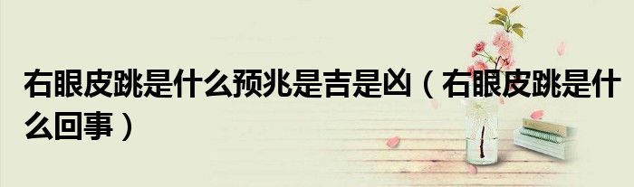 大家好,知識小編來為大家解答以上的問題。右眼皮跳是什么預兆是吉是兇,右眼皮跳是什么回事很多人還不知道,現(xiàn)在讓我們一起來看看吧!