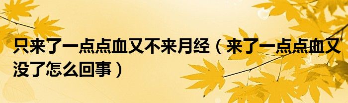 大家好,知識(shí)小編來(lái)為大家解答以上的問(wèn)題。只來(lái)了一點(diǎn)點(diǎn)血又不來(lái)月經(jīng),來(lái)了一點(diǎn)點(diǎn)血又沒(méi)了怎么回事很多人還不知道,現(xiàn)在讓我們一起來(lái)看看吧!