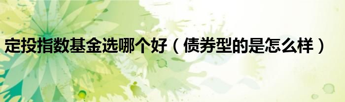 大家好,伊人來(lái)為大家解答以上問題。定投指數(shù)基金選哪個(gè)好,債券型的是怎么樣很多人還不知道,現(xiàn)在讓我們一起來(lái)看看吧!