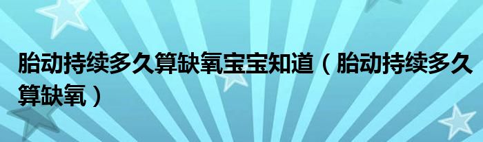 摘要大家好,知識小編來為大家解答以上的問題。胎動持續(xù)多久算缺氧寶寶知道,胎動持續(xù)多久算缺氧很多人還不知道,現(xiàn)在讓我們一起來看看吧!一般