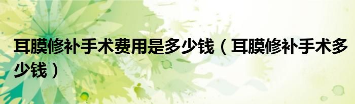 鼓膜修補(bǔ)術(shù)適用于外傷、中耳炎引起的鼓膜穿孔。鼓膜修補(bǔ)術(shù)的費(fèi)用一般從以下幾個(gè)方面考慮:1。醫(yī)院的級(jí)別,級(jí)別越高,費(fèi)用越高;2.鼓膜修復(fù)的材料,如果是自身組織修復(fù),花費(fèi)會(huì)少一些;如果使用人工材料,則需要額外的2000-3000元;3.目前常用顯微鏡或耳鏡作為手術(shù)的輔助手段。一般來(lái)說,三甲醫(yī)院用自己的組織修復(fù)鼓膜的話,一般在一萬(wàn)元左右。本文到此結(jié)束,希望對(duì)大家有所幫助。