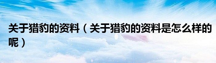 摘要大家好,伊人來為大家解答以上問題。關(guān)于獵豹的資料,關(guān)于獵豹的資料是怎么樣的呢很多人還不知道,現(xiàn)在讓我們一起來看看吧!1、獵豹(學(xué)名