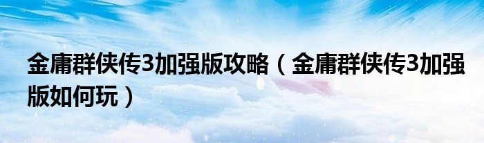 大家好,伊人來為大家解答以上問題。金庸群俠傳3加強(qiáng)版攻略,金庸群俠傳3加強(qiáng)版如何玩很多人還不知道,現(xiàn)在讓我們一起來看看吧!