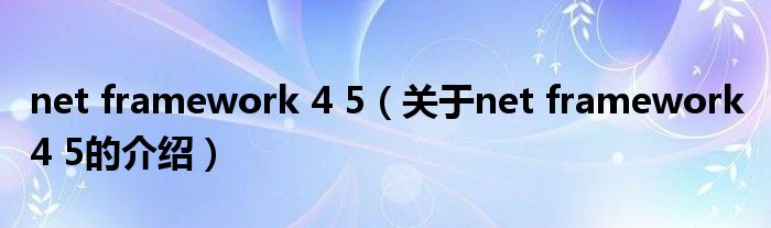 大家好,小新來為大家解答以上的問題。net framework 4 5,關(guān)于net framework 4 5的介紹很多人還不知道,現(xiàn)在讓我們一起來看看吧!