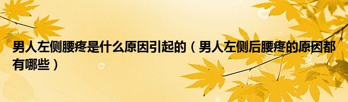 大家好,知識小編來為大家解答以上的問題。男人左側腰疼是什么原因引起的,男人左側后腰疼的原因都有哪些很多人還不知道,現(xiàn)在讓我們一起來看看吧!