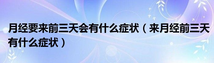 大家好,知識小編來為大家解答以上的問題。月經(jīng)要來前三天會有什么癥狀,來月經(jīng)前三天有什么癥狀很多人還不知道,現(xiàn)在讓我們一起來看看吧!