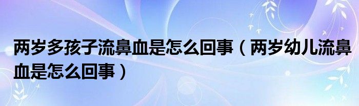 摘要大家好,知識小編來為大家解答以上的問題。兩歲多孩子流鼻血是怎么回事,兩歲幼兒流鼻血是怎么回事很多人還不知道,現(xiàn)在讓我們一起來看看吧