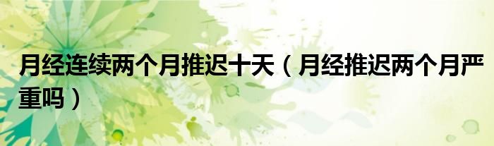 大家好,知識(shí)小編來為大家解答以上的問題。月經(jīng)連續(xù)兩個(gè)月推遲十天,月經(jīng)推遲兩個(gè)月嚴(yán)重嗎很多人還不知道,現(xiàn)在讓我們一起來看看吧!