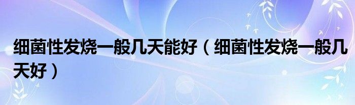 大家好,知識小編來為大家解答以上的問題。細(xì)菌性發(fā)燒一般幾天能好,細(xì)菌性發(fā)燒一般幾天好很多人還不知道,現(xiàn)在讓我們一起來看看吧!