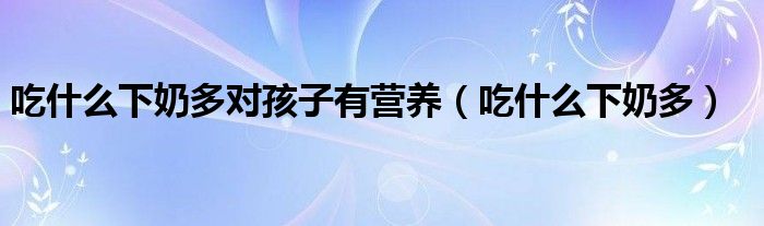 大家好,知識小編來為大家解答以上的問題。吃什么下奶多對孩子有營養(yǎng),吃什么下奶多很多人還不知道,現(xiàn)在讓我們一起來看看吧!
