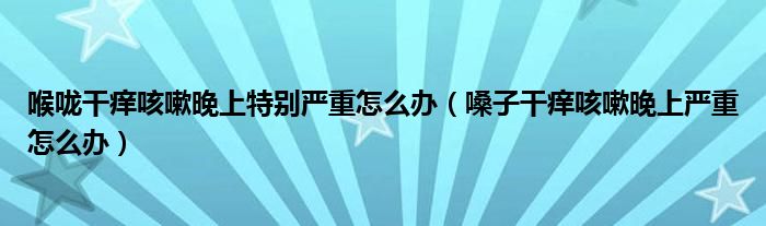 摘要大家好,知識(shí)小編來(lái)為大家解答以上的問(wèn)題。喉嚨干癢咳嗽晚上特別嚴(yán)重怎么辦,嗓子干癢咳嗽晚上嚴(yán)重怎么辦很多人還不知道,現(xiàn)在讓我們一起來(lái)