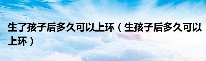 大家好,知識小編來為大家解答以上的問題。生了孩子后多久可以上環(huán),生孩子后多久可以上環(huán)很多人還不知道,現(xiàn)在讓我們一起來看看吧!