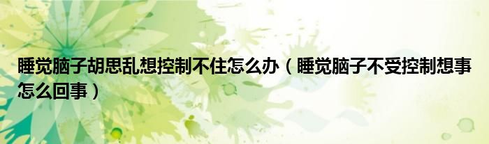 大家好,知識小編來為大家解答以上的問題。睡覺腦子胡思亂想控制不住怎么辦,睡覺腦子不受控制想事怎么回事很多人還不知道,現(xiàn)在讓我們一起來看看吧!