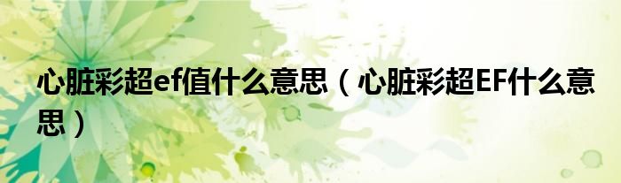大家好,知識小編來為大家解答以上的問題。心臟彩超ef值什么意思,心臟彩超EF什么意思很多人還不知道,現(xiàn)在讓我們一起來看看吧!