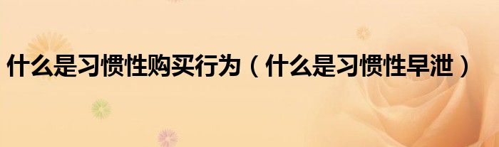 大家好,知識小編來為大家解答以上的問題。什么是習(xí)慣性購買行為,什么是習(xí)慣性早泄很多人還不知道,現(xiàn)在讓我們一起來看看吧!