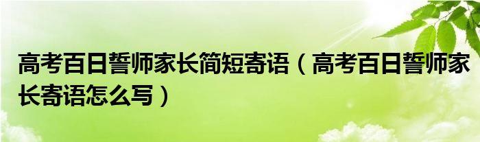 大家好,伊人來為大家解答以上問題。高考百日誓師家長簡短寄語,高考百日誓師家長寄語怎么寫很多人還不知道,現(xiàn)在讓我們一起來看看吧!