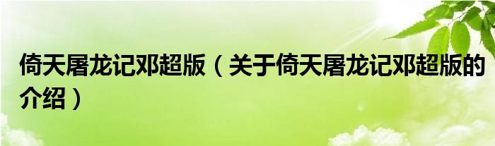 大家好,小新來(lái)為大家解答以上的問(wèn)題。倚天屠龍記鄧超版,關(guān)于倚天屠龍記鄧超版的介紹很多人還不知道,現(xiàn)在讓我們一起來(lái)看看吧!