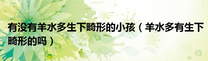 大家好,知識小編來為大家解答以上的問題。有沒有羊水多生下畸形的小孩,羊水多有生下畸形的嗎很多人還不知道,現(xiàn)在讓我們一起來看看吧!