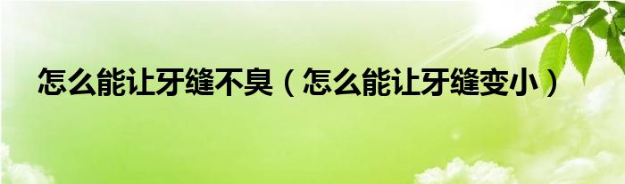 大家好,知識小編來為大家解答以上的問題。怎么能讓牙縫不臭,怎么能讓牙縫變小很多人還不知道,現(xiàn)在讓我們一起來看看吧!